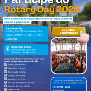 O Rotary Day é um evento comunitário aberto ao público, idealizado para aproximar o Rotary da sociedade por meio de ações práticas e acessíveis. Realizado em espaço público, o evento reúne clubes rotários, voluntários e parceiros para oferecer serviços gratuitos e orientações que contribuem diretamente para a qualidade de vida da população. Ao longo do […]